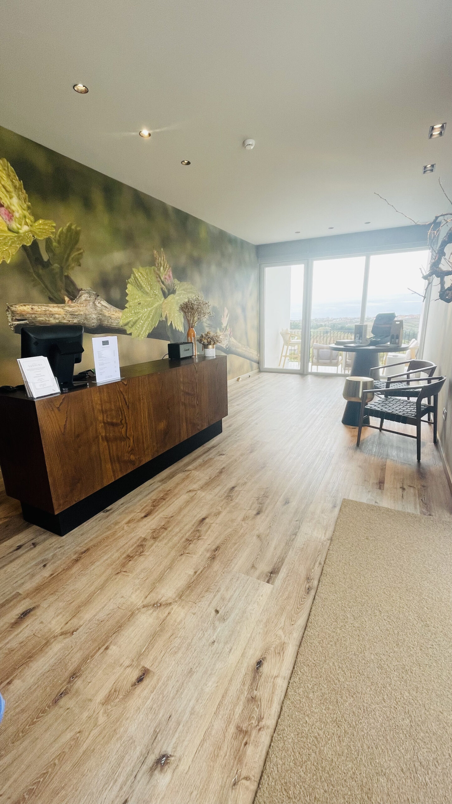 O espaço dedicado ao enoturismo e a atual produção de 300 mil litros de vinho foi criado em 2021, oferecendo um ambiente moderno, com uma luz natural incrível em perfeita sintonia com o ambiente externo e ainda muito acolhedor.